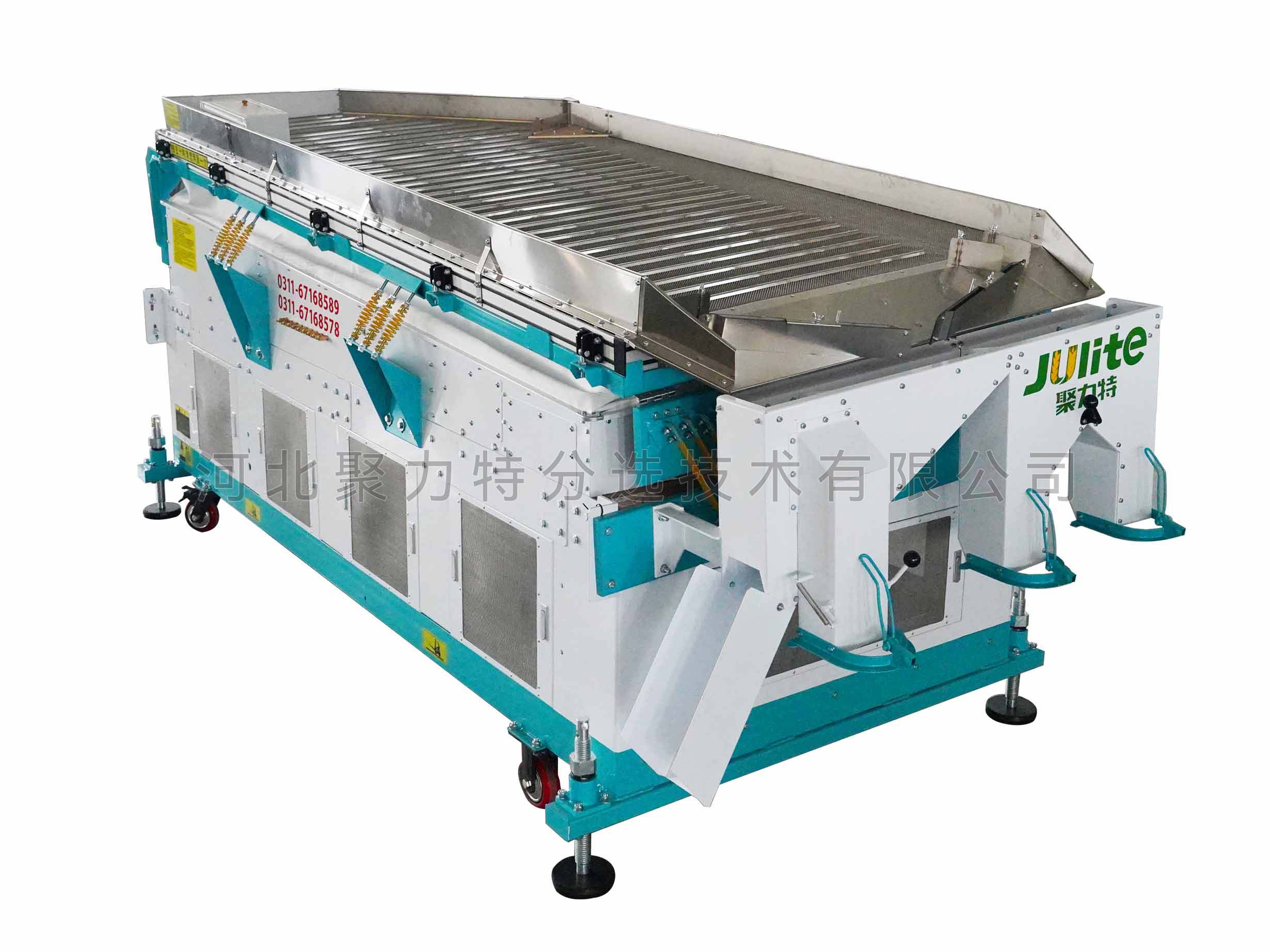1、精度高:臺(tái)面振動(dòng)和勻風(fēng)結(jié)構(gòu)經(jīng)過嚴(yán)密設(shè)計(jì),出糧口精細(xì)分糧,大大提高了篩選精度;