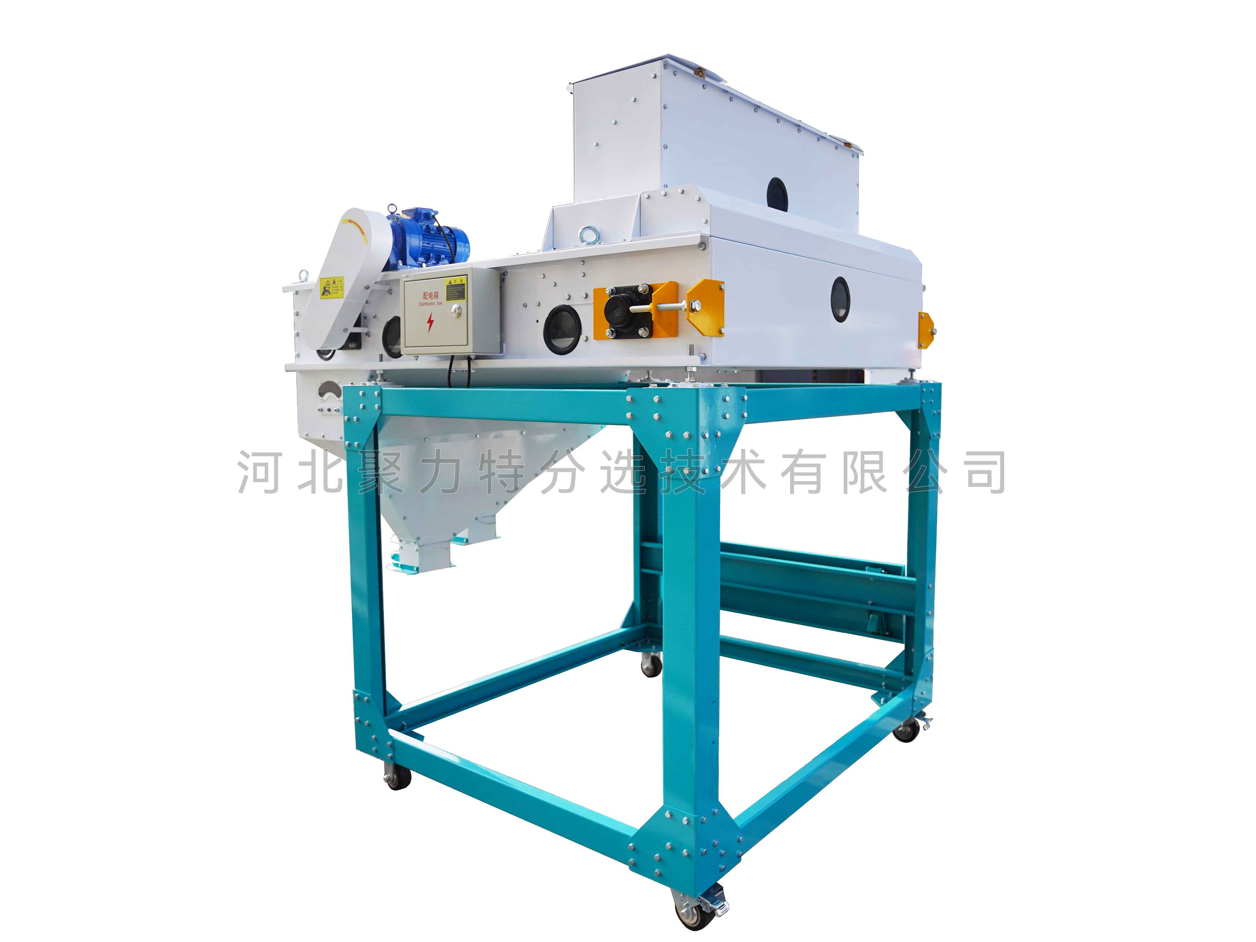 土塊中含有微量的鐵氧體等磁性礦物質(zhì),磁選機是將物料通過散糧、輸送等過程使其形成穩(wěn)定的拋物線運動,再由磁輥形成的高強磁場影響物料中土塊的運動軌跡,最終使物料與土塊實現(xiàn)分離。
