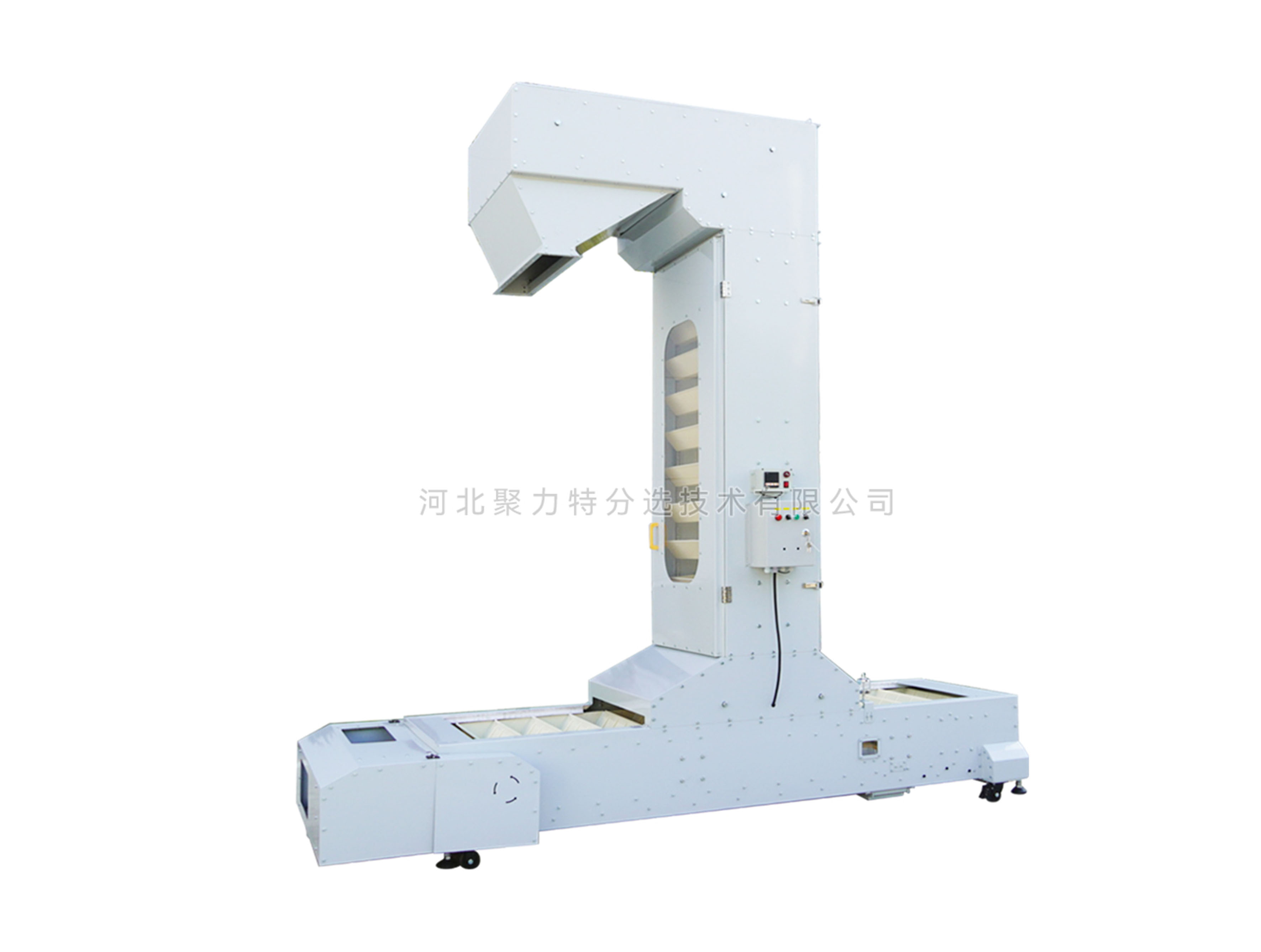 1、輸送鏈為套筒滾子鏈,誘導(dǎo)式重力卸料,無破碎;